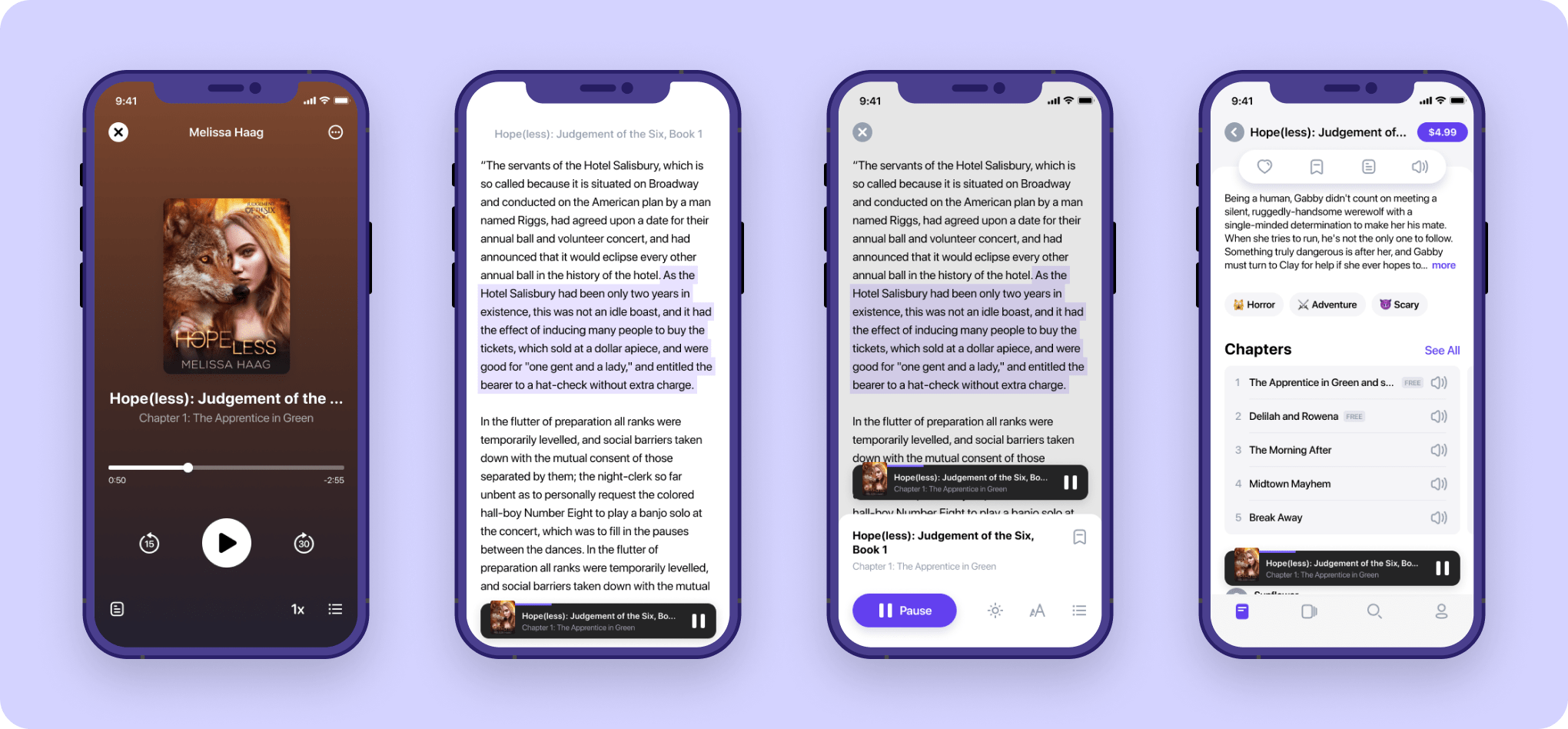 The book listening screen can be minimized, allowing user to access other features of the app while still enjoying your audiobook. A mini player will be displayed on every screen until user choose to stop listening.