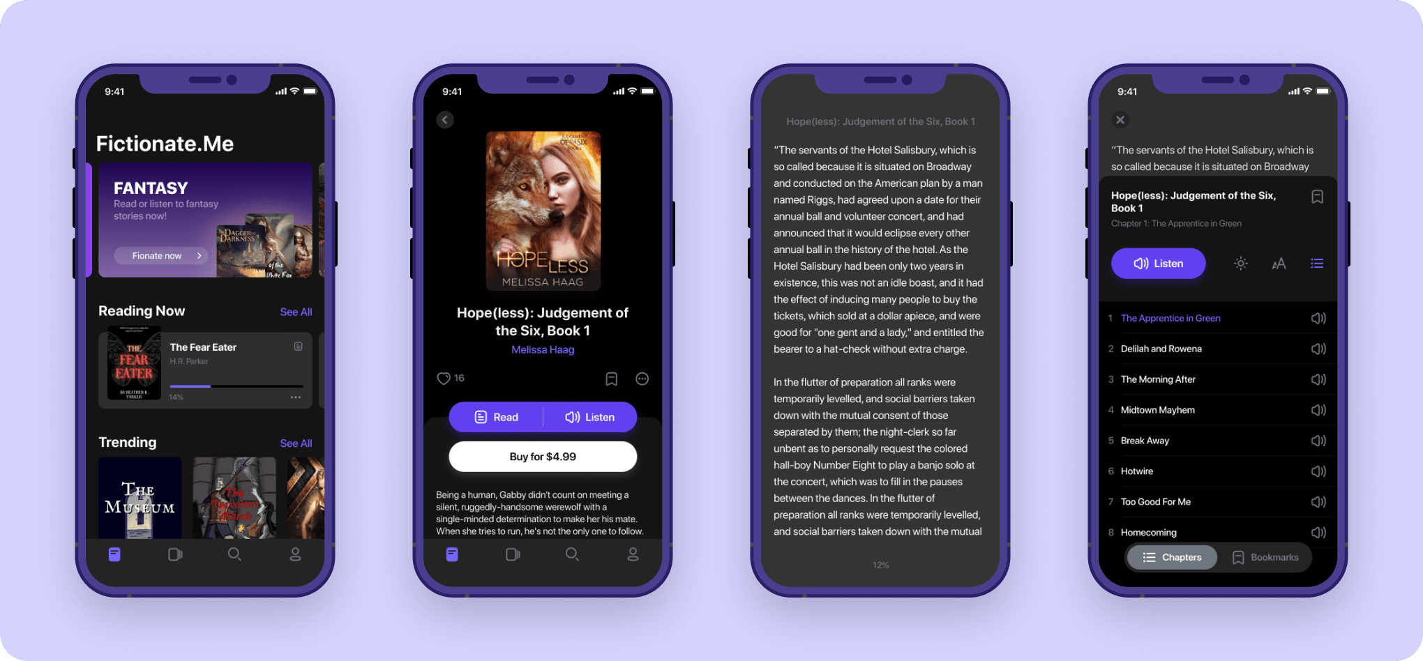 Fictionate.me is a web platform that connects writers with readers. Writers can publish and sell their books chapter by chapter, while readers can discover new and interesting authors, follow and support them. Additionally, every work published on Fictionate.me includes a free audiobook version.